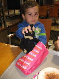 .......Master 3 decided he had a cranky face and must need lots of cuddles. He carried him everywhere in the shops and cuddled him at every opportunity.